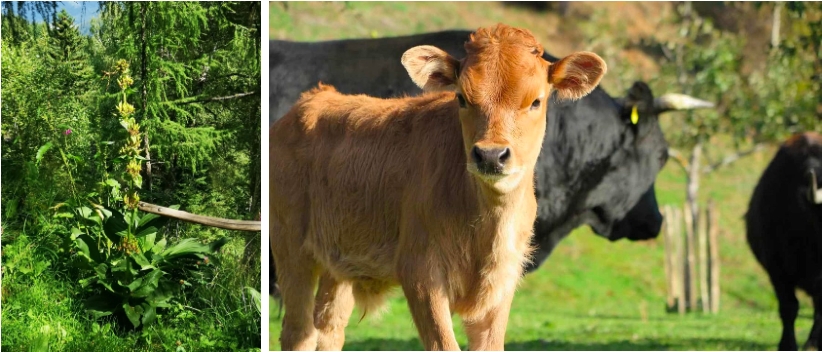 农场的黄牛在山坡上随意游走觅食。小霍尔泽在山坡上遍植着一种价值不菲的草药:黄天麻。我们担心黄牛可能会食用黄天麻,影响农场收益。