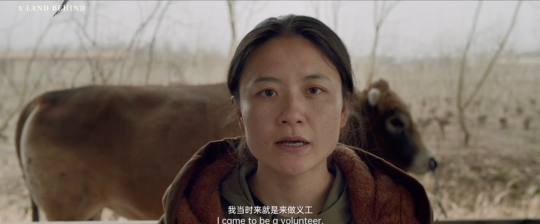 当女主人公小余第一次以正面特写,直视镜头,我们终于看清了她模样,听清了她的声音。教授发问“为什么来到农场?”她回答:“之前是义工,做着做着就留下了。”在她的身后,一只小牛踱步而过,这里已经预演了故事的结局。