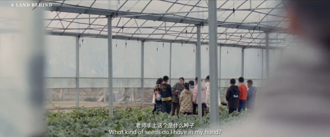 在进入农场空间之后,一组固定镜头和长镜头的蒙太奇,以纪录片般的耐心与质感再现了农场的劳动日常。女孩又推起推车忙碌,她的劳动镜头与农场主汤老师有着均衡的份量。她于背景之中,逐渐显影。
