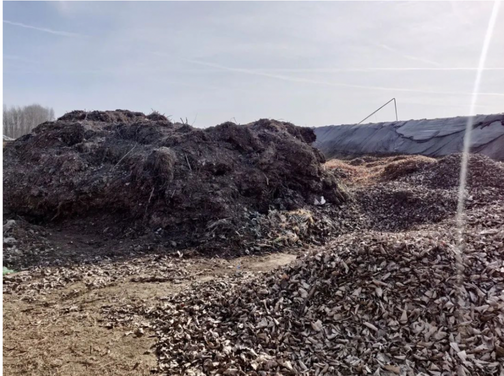 在农场门口则另有一个占地一亩多的落叶堆。这是美味蔬菜的另一个法宝——树叶堆肥。落叶堆里是从附近收集的园林落叶,发酵一年就可以使用。
