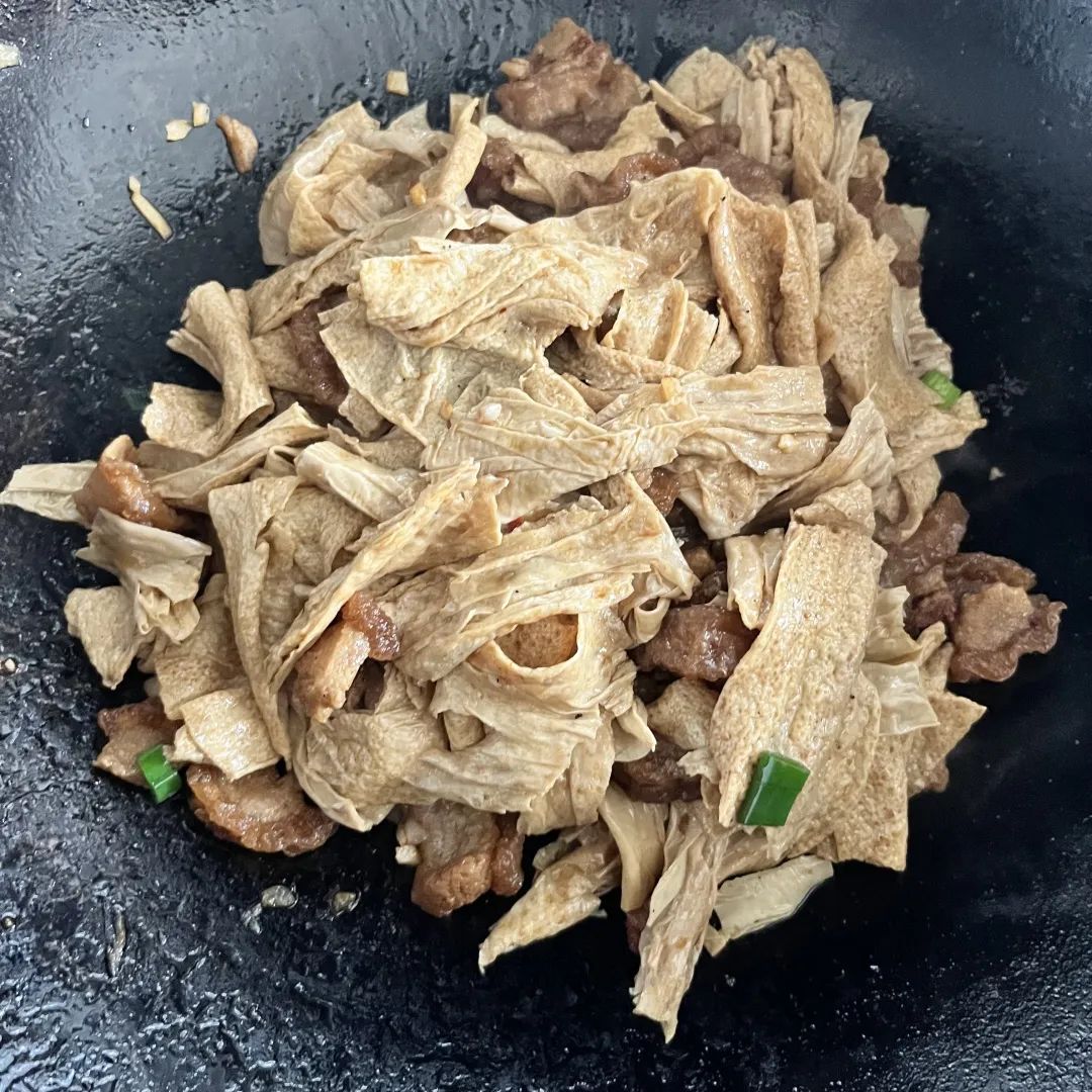 这油豆皮是豆浆在点“石膏”之前凝结而成的,干净又好吃。但因易碎且不成产量,在豆腐厂里被算作了 “废料”。妈妈舍不得扔掉,一张一张存留了下来,于是足足收了一麻袋。平日里总想不起来吃,现在却能应急了。