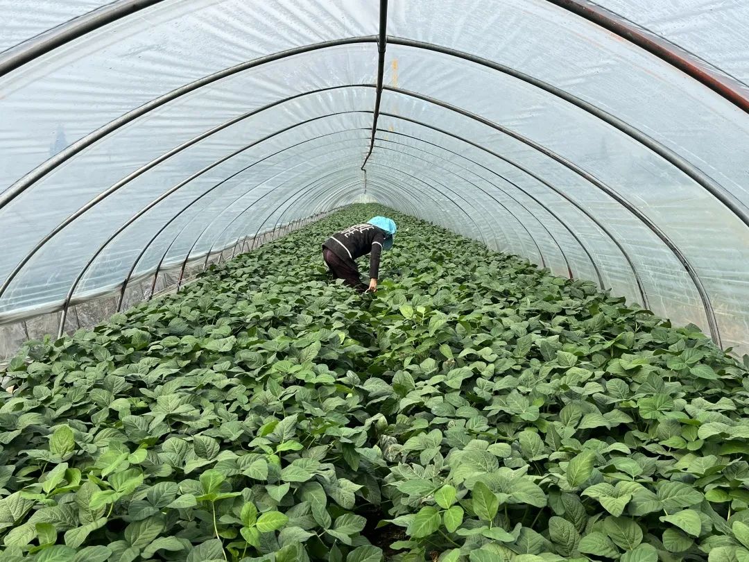 另一座大棚是大豆与豇豆套种,姨夫正在里头浇水,豇豆已经挂花。花开将结果,本该有喜气。然而今年他们心下始终惴惴,大豆、豇豆往常都多是销往上海,眼下还是前途不明。一年在春,目前只能小心展望,一切等待豆子熟时再宣判。