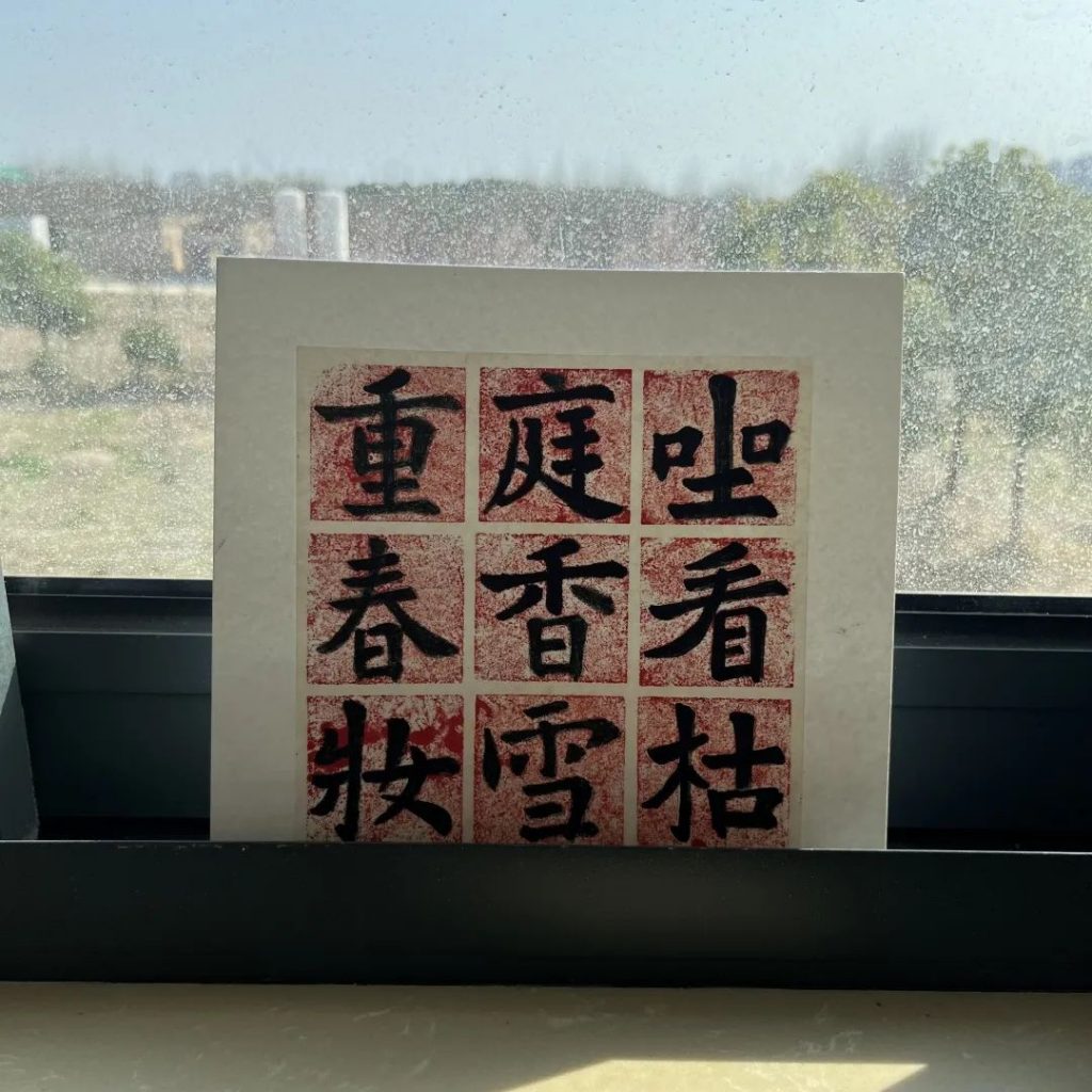 ●住院期间描完了九九消寒图,窗户外面即是妈妈挑草头的荒地。