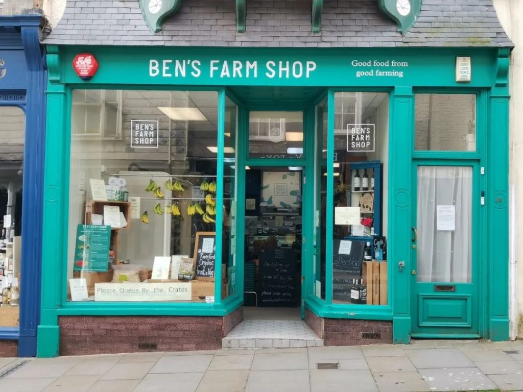 我们经常光顾的另一家是高街的“本的农场商店”(Ben’s Farm Shop),这家家族经营已经35年的本地农场通过商店集中供应自家生态食材。旁边不远处就是用使用农场直供食材的餐厅Ben’s Wine & Tapas,供应自制的香肠和各种小吃。