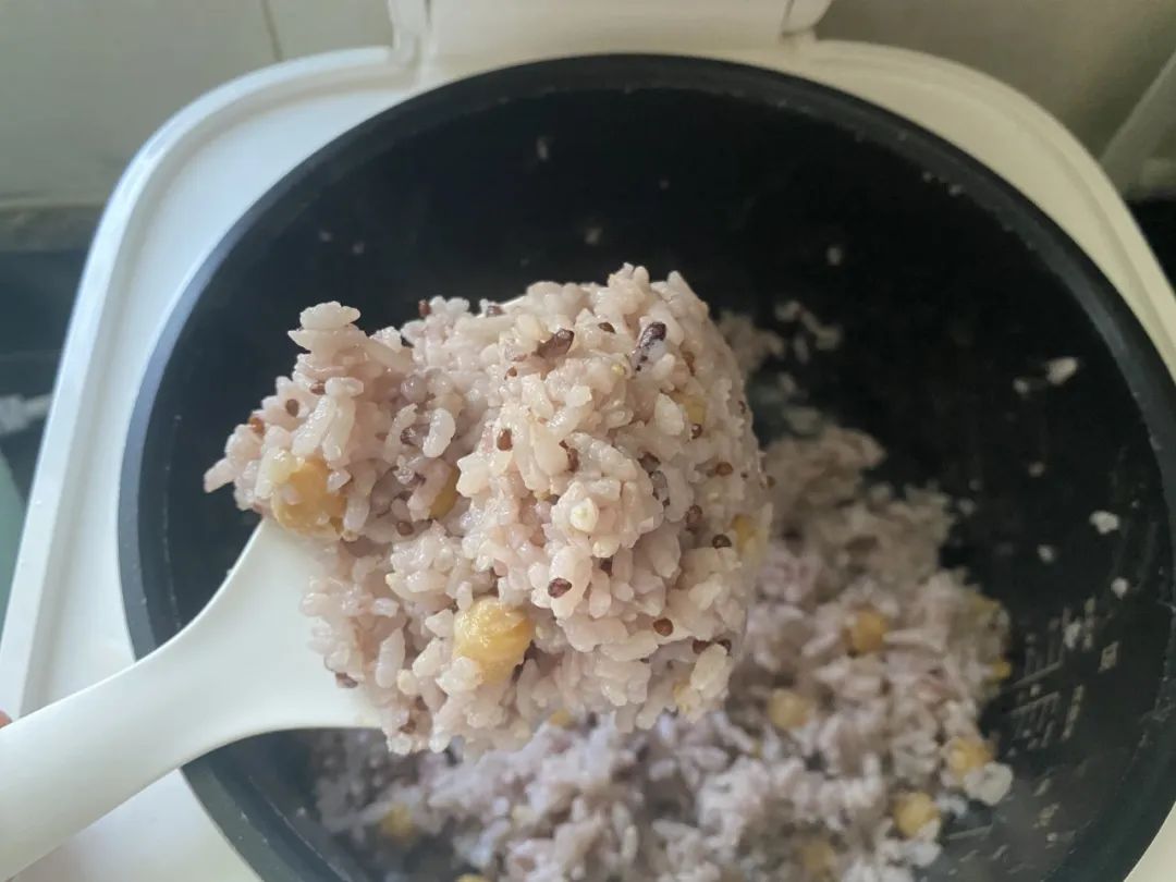 好的碳水对拥有东亚基因的身体而言非常重要,所以,在降低大米比例的基础上,我会混合糙米或小米,再加入一些种子和豆类,比如生腰果、松子、玉米碎、黑豆、花生等来实现食物种类、口感以及营养的全面丰富。