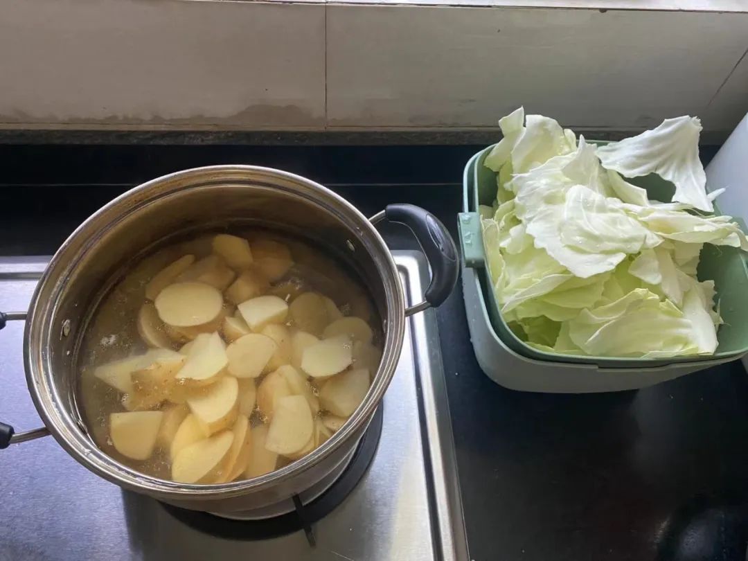 大人们忙的时候,煮饭的工作就会交给十几岁的姐姐们,我这个小尾巴就一边帮忙烧火,一边看她们怎么煮饭。通常我们会先洗米,煮米,趁煮米的时间,抓一把“洋芋儿”出来洗干净,再把莲花白叶子撕成小块。