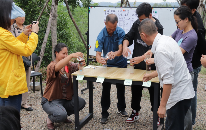◉家园行动的技术顾问、高级农艺师袁勇在田间地头与大伙儿一起做土壤对比试验。