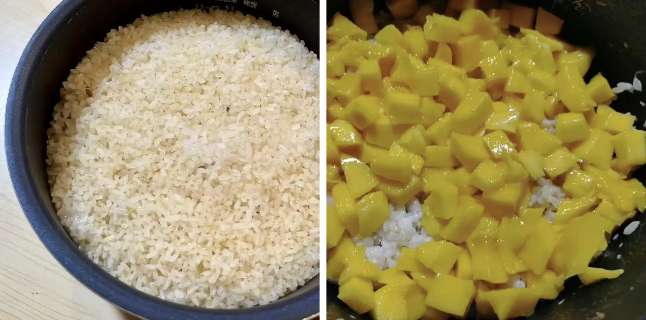 ◉食通社上个月的工作餐,就吃了四川生态农友孙文祥保存的珍贵老品种“红嘴糯米”,剩下的米饭配上广西野生芒果、椰浆,即成一顿口感绝妙的芒果饭。图源:食通社