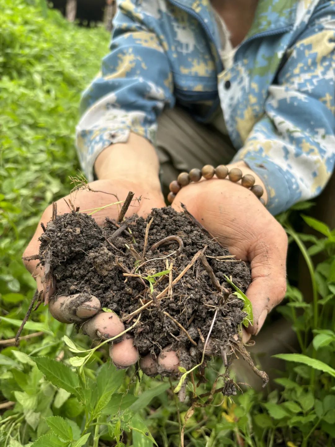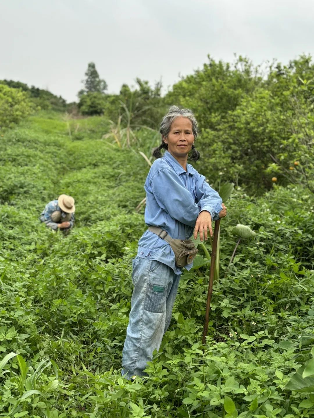 ●颜萍姐在割草,适时控制草的长势为地所用。留草可以让土壤有良好的回润功能,有助于植物根系从土壤深处吸取水分养分。