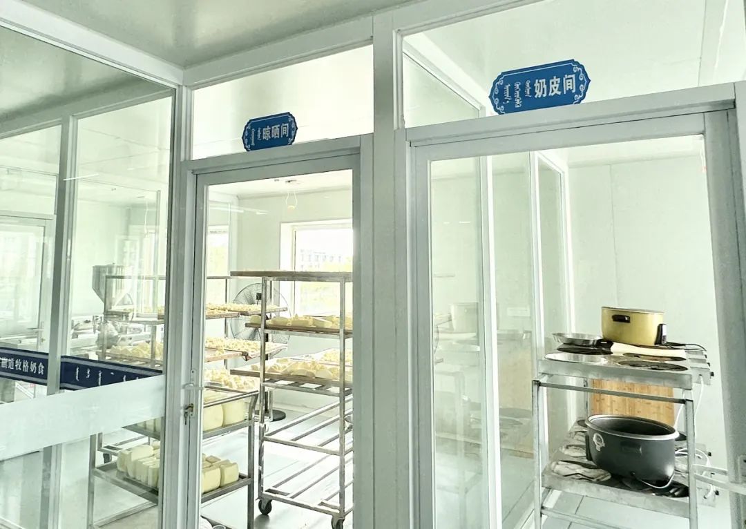 2020年,格日乐在政策鼓励下开办了奶食加工作坊,投入使用自动化机器,原奶通过制冷搅拌罐和输送管道运送至生产车间。发酵车间通过空调控制环境温度,保证发酵过程稳定性,一小时即可产出至少30斤奶豆腐成品。
