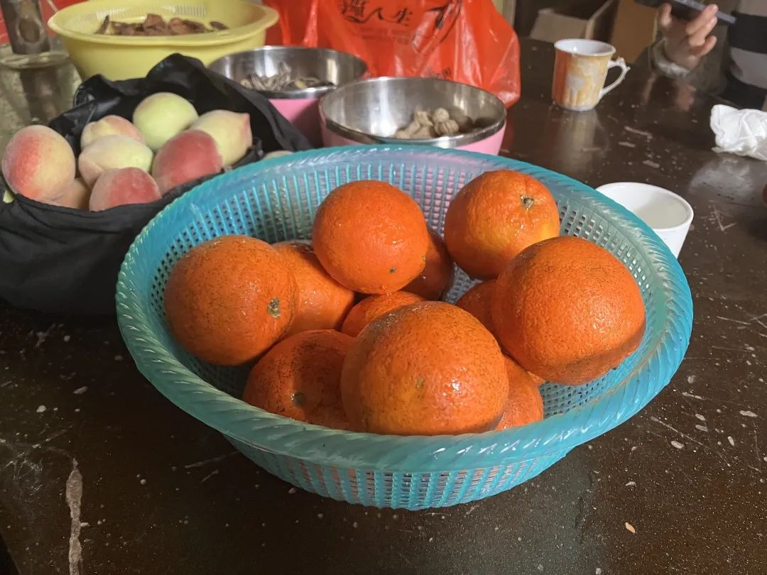 说着,他拿出几个冬天储存下来的脐橙招待我们。