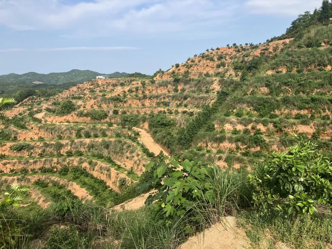 小舅带我们爬上果山,向四周望去,新开的果园和旧果园非常不同:几个山头被大型机械平整成台地,树苗栽种时间不长,裸露出树下的红土地。
