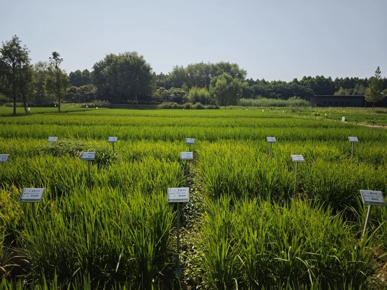 除了时间、空间之外,杂草和作物的界限也可以通过品种多样性而模糊化。悦丰岛承担着老品种保育的任务,在上百个水稻品种中,大约20种成行地进行扩繁,40种左右在一米见方的小田块进行保育。这些保育方还需额外用竹竿、绳子加固,并适时加装防鸟网和遮阳网。在这里,不同脾性的水稻让我大开眼界:早熟晚熟、高秆矮秆、水稻旱稻,不一而足。特别是有的高秆品种,稻叶像乱发一样弯倒,穗子也随性散开——在绝大多数其它稻田中,它们都被视为“野稻”或“杂草稻”而拔除。