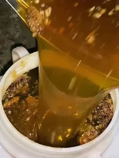 除了新式蜂箱,村里还保留了不少用桦树树干做的传统棒棒巢。在棒棒巢里取蜜,就不得不把蜂巢破坏掉,巢脾割下来捣碎,再过滤出蜂蜜。但是捣碎的蜂巢也不浪费,可以做成蜂蜡和蜂蜜酒。