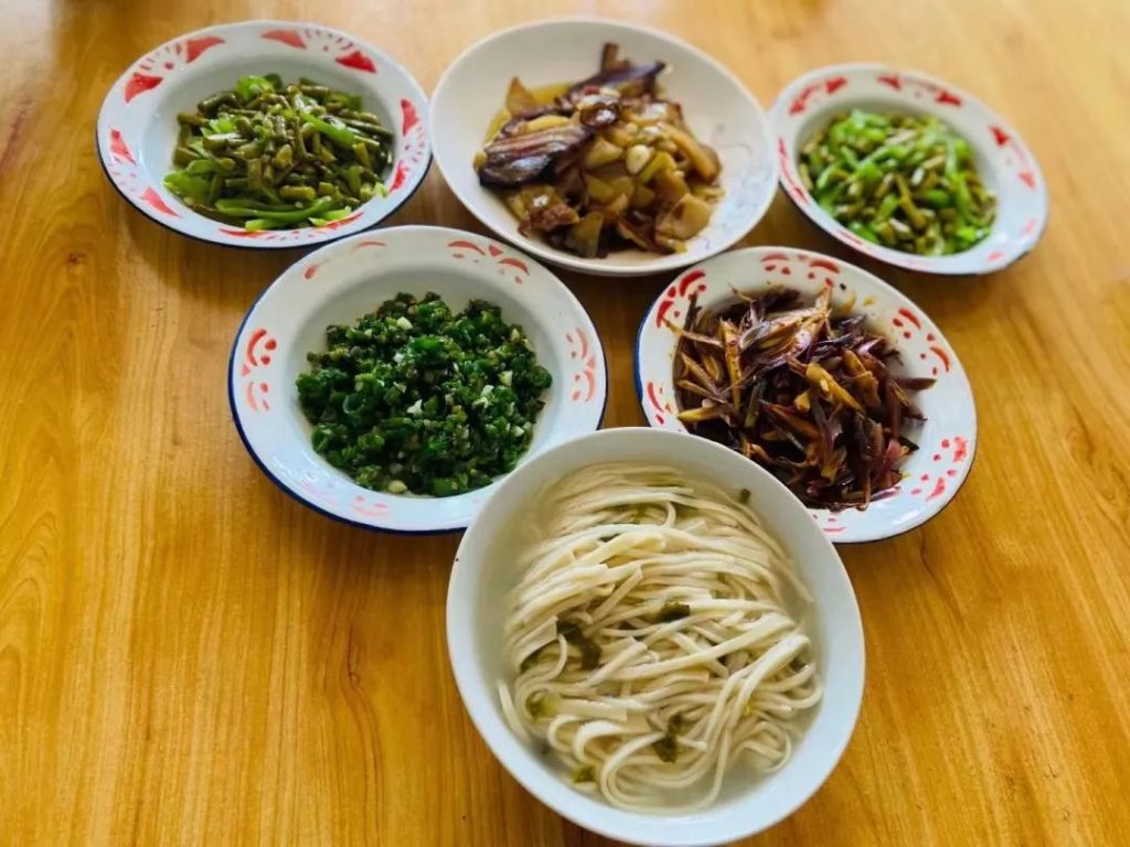 浆水面也是村里的特色美食。浆水倒没什么特别的,真正暗藏玄机的是用小麦面、荞麦面、玉米面和豆面等四五种杂粮做成的面条,兼顾口感和营养,讲究程度真让我这个自诩“好吃”的人汗颜。