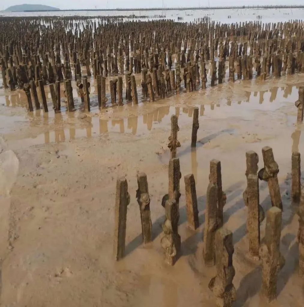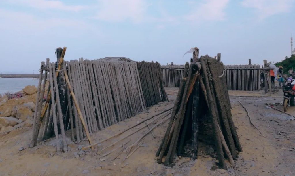直到上世纪70年代中期到80年代初,蚝民们开始采用“水泥柱”作为附着基来插养蚝苗,而这就是蚝民所说的“立柱法”。