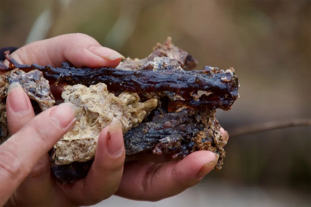 ●朗恒拿着从森林树木中收集的树脂,这些树脂可以出售用于制造油漆。