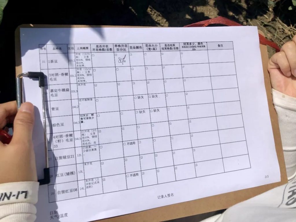“ 七月,我们正式开始了在种子试验田的观察和记录工作。试验田的百余种水稻大多处在拔节期,有个别早熟品种已经到了孕穗期,近三十种豆类则处在开花结荚期。
