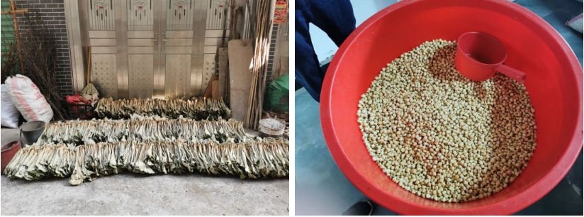 其次是简便的田间管理与加工工艺:白莲在种植、采收乃至加工环节并不需要大棚蔬菜那样复杂的技术,因此能最大程度动员儿童、妇女和老人等家庭劳动力的参与。当地农民常说:“一个老人家就可管理5-6亩白莲。”入户调研时,我们常常发现一个家户上至80岁老人,下至6岁孩童都会参与鲜莲的去壳、去皮、通心的加工环节中,堪称一个小型的白莲作坊。