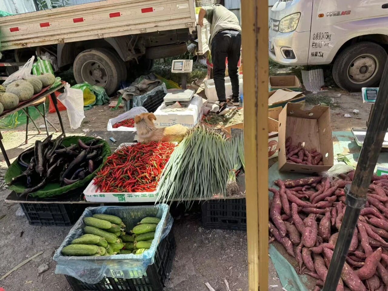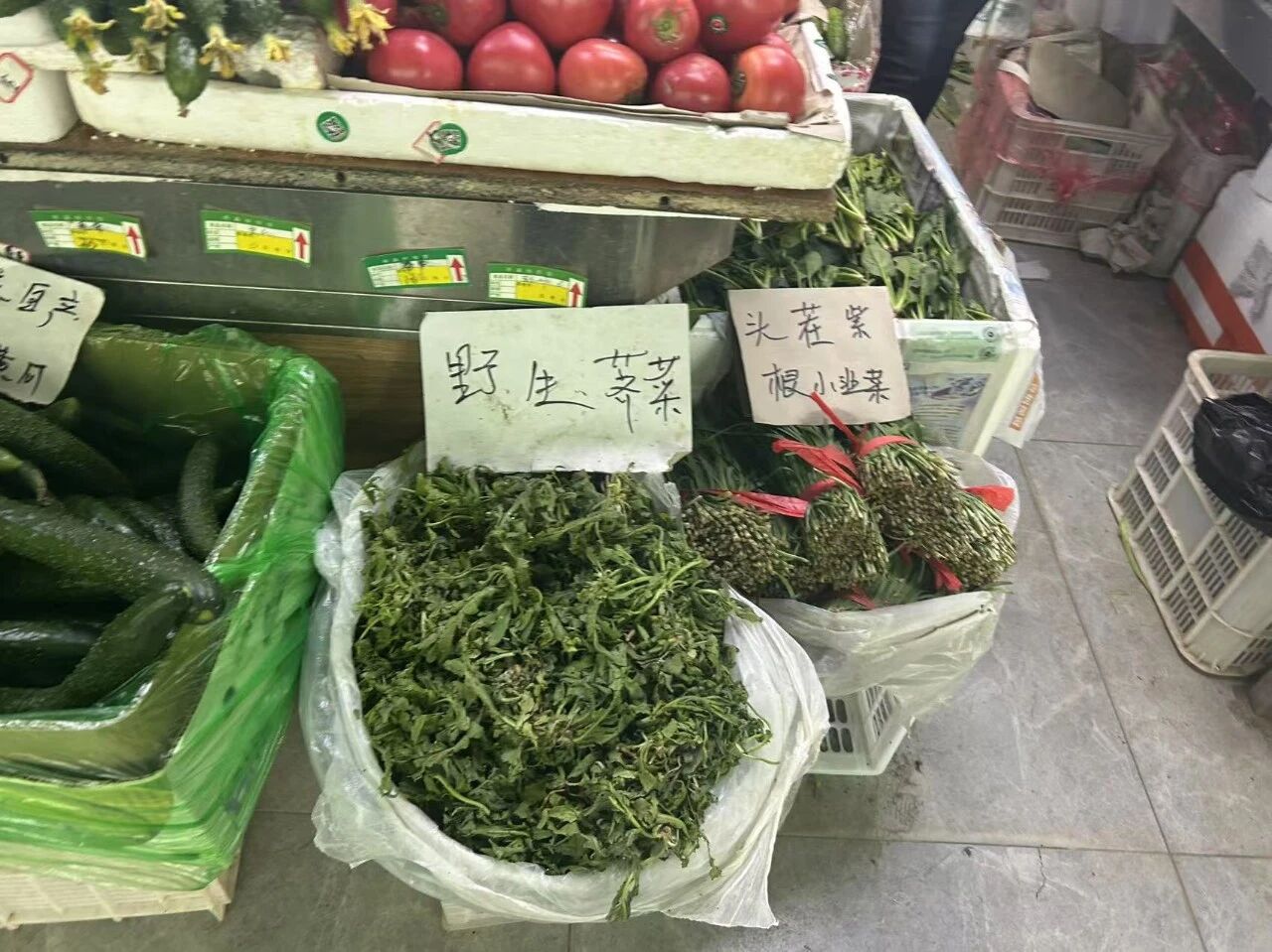 关于挑菜,蔬菜可以看看底部横切面,比较水润的就很新鲜,底部已经干巴而且变色了的可能就不太新鲜了。如果挑番茄,要挑6个叶子的,比5个叶子的甜一点,水分也更多。最好的方法当然是直接问老板啦,他们会很愿意教你挑菜的。