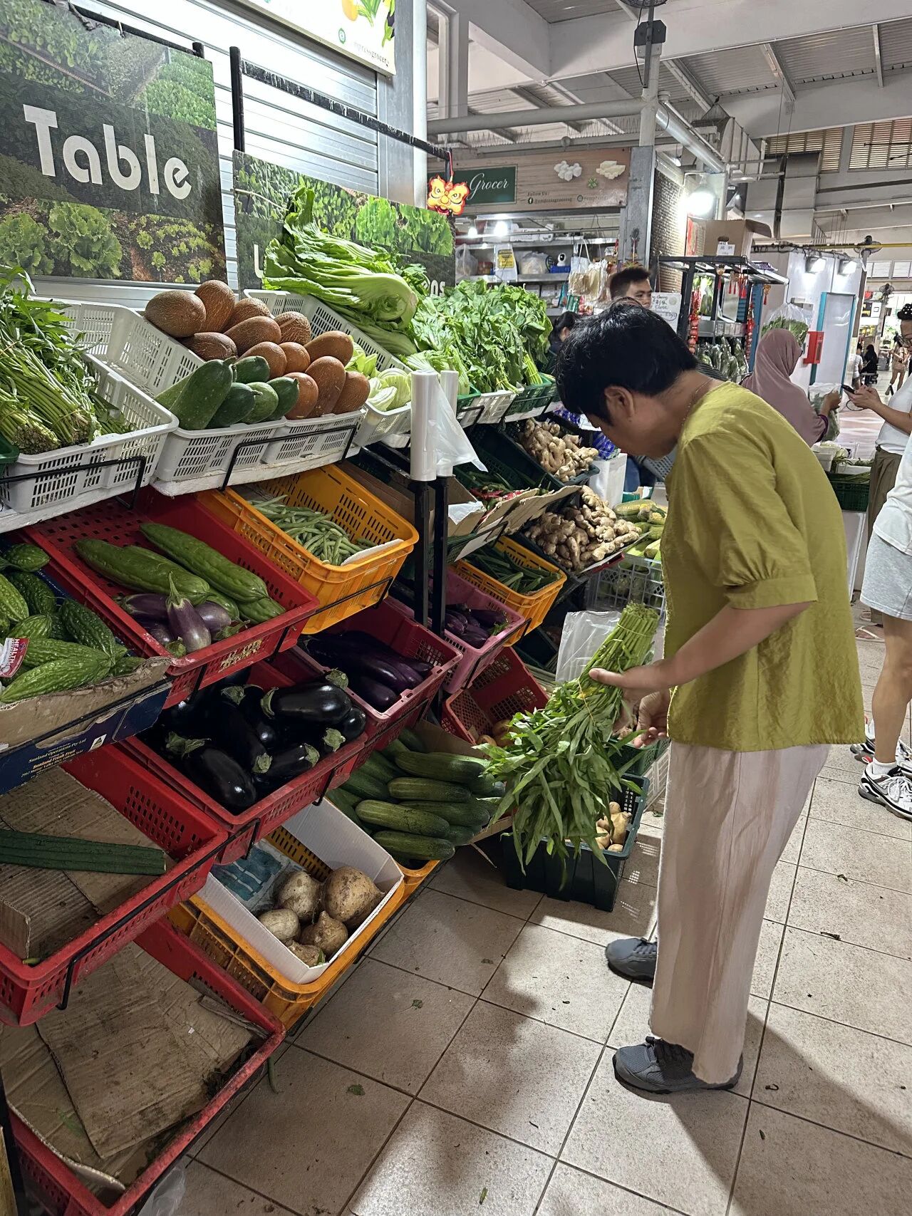 巴刹的蔬果也都是包在塑料袋里从马来西亚、印尼以及中国等地进口而来,谈不上泥土气息和本地性,和我妈在老家逛惯了有农民售卖自家货的早市终究不是一回事儿。但巴刹依然提供了食物为经、人情是纬的日常之网,食客们和摊主一样,靠手感、利眼和斤斤计较的功夫构筑自己的生活。