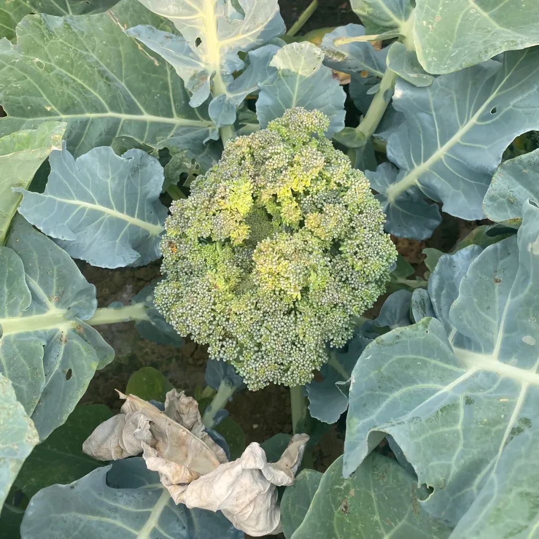 2022年春天我们在昌平种植的西兰花,晒得老化发黄,周围农户的情况也不如往年。往年我们总是担心温度太低,但去年反倒温度偏高。几次反常的短暂高温,就让西兰花的花球变了颜色。