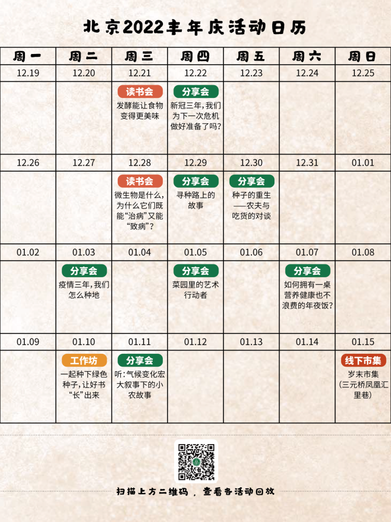 这是我们并不完美的初次尝试,但北京丰年庆会是我们长期坚持去做的事情。在此特别感谢今年的共创伙伴(排名无分先后):北京有机农夫市集、农民种子网络、自然之友、自然之友·盖娅自然学校、王珏、郑圆、北京鸿雁社工服务中心、无毒先锋。