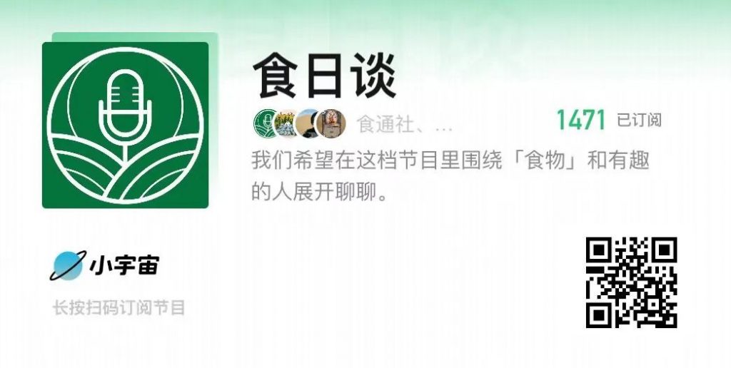 ●“食日谈”已上线小宇宙、喜马拉雅、荔枝播客、苹果播客等多个平台,欢迎扫码关注。