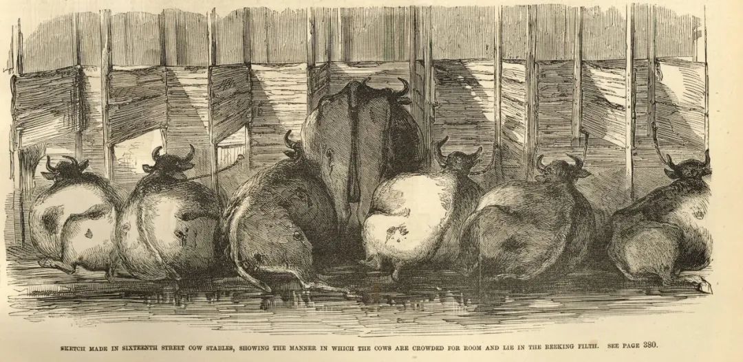 同样的情况也发生在19世纪的伦敦。当时,牛奶保鲜技术还不成熟。为了满足城市人口对鲜奶的需求,奶牛大多饲养在城市小巷的店里。牛奶现挤现卖,因此很容易沾染上灰尘和病菌。肺结核常常通过牛奶传播,极高的婴儿死亡率也被认为是牛奶惹的祸。