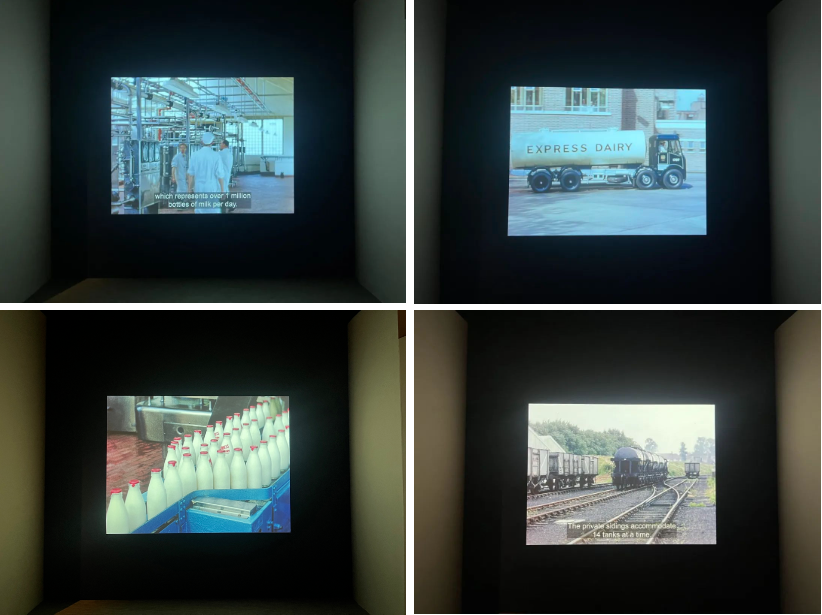比如成立于1864 年的快速奶业(Express Diary)。展览节选了1950 年代快速奶业长达 20 分钟的宣传片。该宣传片以身穿白衣的送奶工和一袭白裙的家庭主妇买卖牛奶的场景开场,展现了该集团从奶源收集、检测、杀菌、装瓶、运输的全过程,力图挽回消费者对牛奶安全的信心。