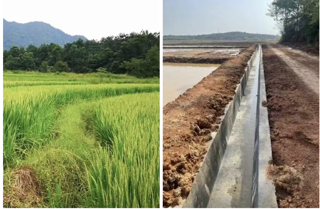 一位之后加入D村村委的村民回忆,复耕前,地里已杂草丛生,齐人头高。在国家不能撂荒的政策要求下,村委带领大家除草,用挖机在整块的大田中间又挖了新的水渠,2024年,还埋下了新的排水管。重新改造花了十万多。