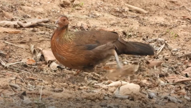 2021-2025年期间,我正好一直在云南省玉溪市新平县做野外观察。红原鸡的野外生境比较干热,属于我国北纬23度以南的热带地区。我拍过视频记录雌性红原鸡觅食的场景。作为野生鸟类,红原鸡具有非常强的飞行能力。
