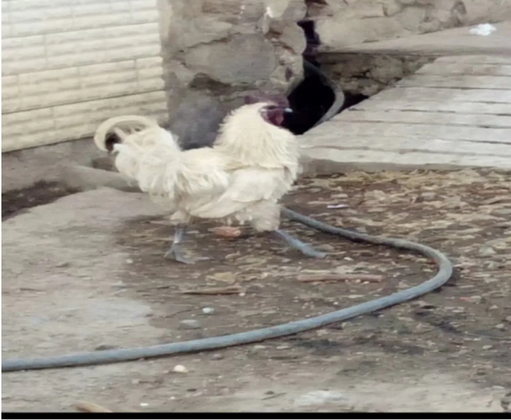 下面这只白色翻毛乌骨鸡,是著名的药用品种,主要分布在当地少数民族村落。其中白羽绿耳翻毛乌骨鸡的药用价值尤其高。
