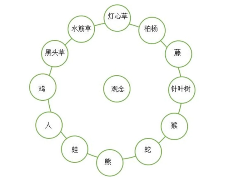 ◉小凉山彝族观念中的“雪族十二支”示意图。供图:邹磊