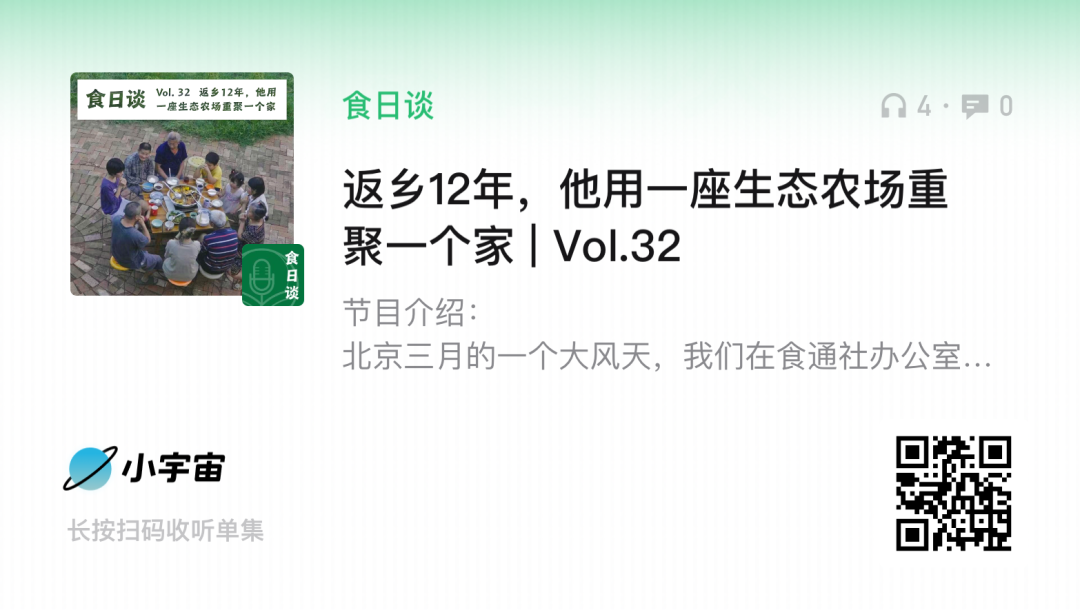 很少当主播以至于忘记在节目里介绍自己的食通社编辑。特别庆幸有一份可以出差拜访各地生态农友的工作,希望这个行业能走得更好更远。