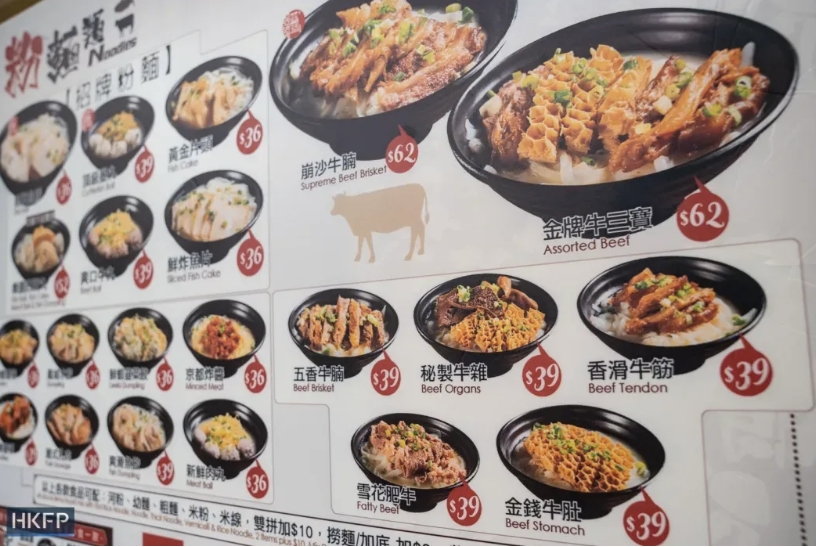 ◉2024年3月15日,香港一家餐厅菜单上的牛肉菜品。图片:Kyle Lam/HKFP