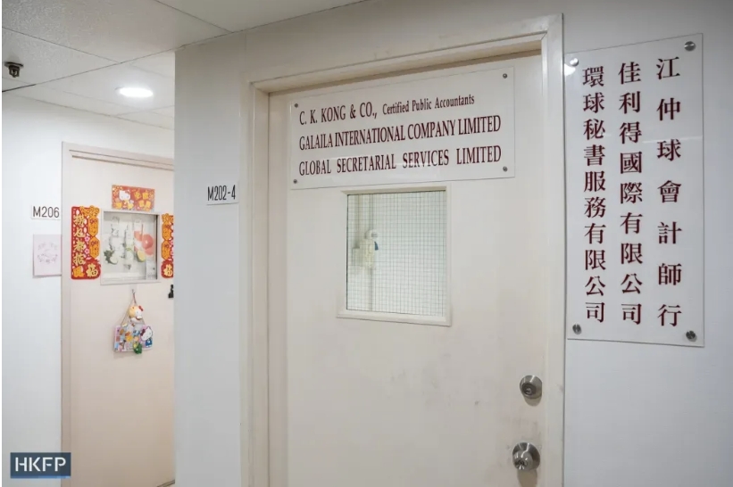 ◉2023年11月23日, Loyalty Union Asia和Galaila International的办公室,分别位于葵涌和中环。图片:Kyle Lam/HKFP