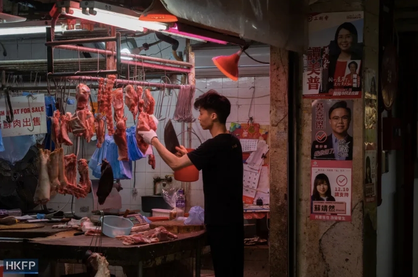 ◉2023年11月7日,香港 Choi Hung Estate的一家肉店。图片:Kyle Lam/HKFP