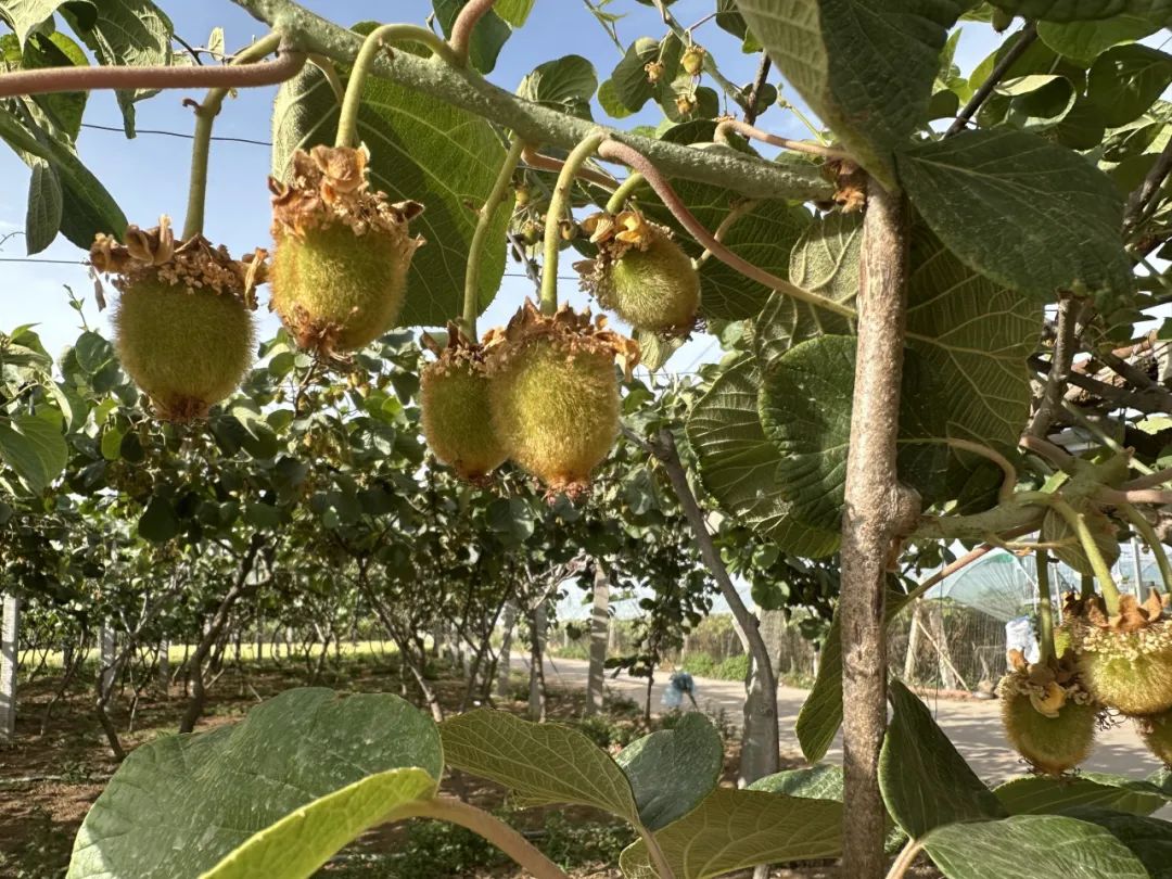 高温催花过早开放,果农们争先恐后地给花授粉。但很多果园还是出现了他们最不想看到的“摇铃铛”——花蕾和花柄干枯死亡,形似铃铛在树上随风摇晃。原因除了提早开花,花器没发育好,也有开花期间叠加罕见的干旱、大风、沙尘等恶劣天气,共同造成了猕猴桃授粉不良。