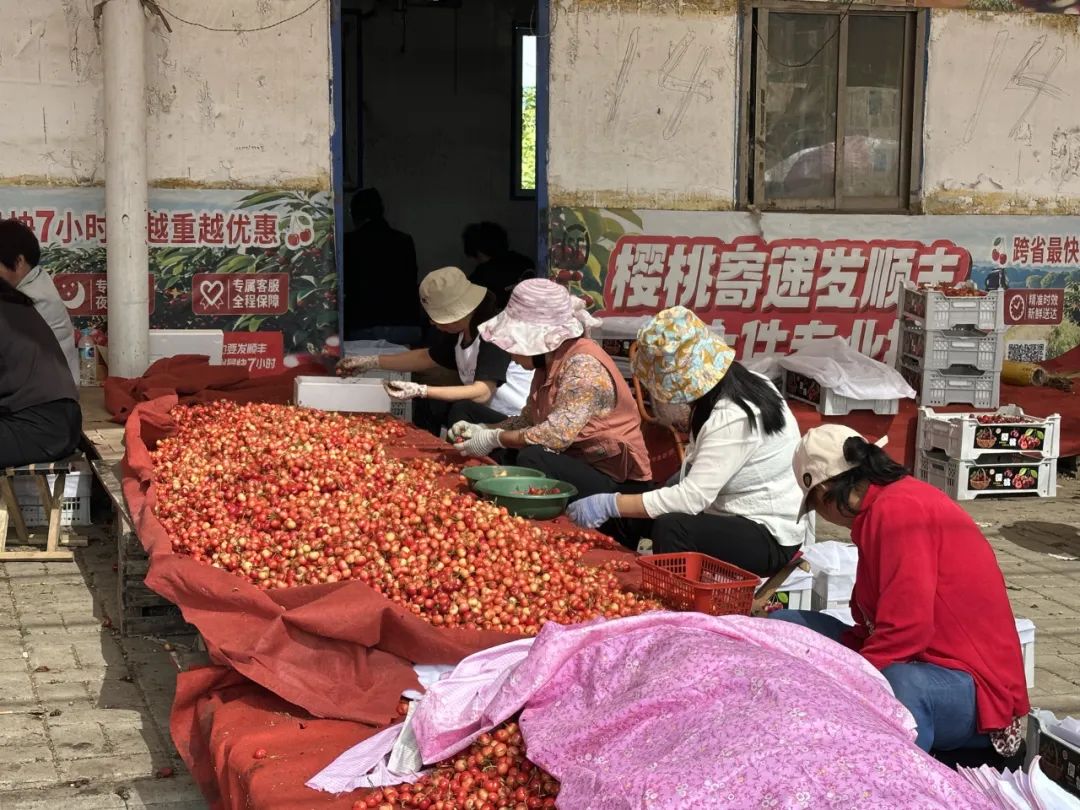 老高还有一行樱桃树。他和妻子从树上摘了满满一袋子给我。果肉紧实,酸甜可口。今年算是樱桃的好年景。虽然清明前后的冰雹打掉了第一波花,收获前的高温又限制了樱桃的个头,但高温干旱让樱桃累积的糖分更高,风味更好。而且相对湿度过低,限制了蚜虫的种群扩繁。“今年的樱桃你放心吃,农药打得少。”当地人这么对我说。