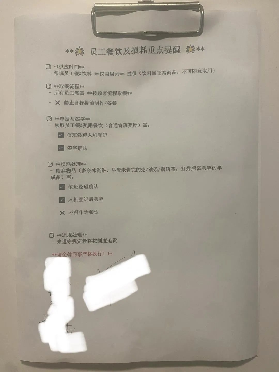 我实在无法接受这种宁可扔掉也不分给员工和员工家人的做法。有时候下班看见剩了很多辣翅,我会想办法带回去一对,有一次煎蛋放太久不能用了,我心想肯定是要扔掉了,就往嘴里塞了两个,套袋子里塞兜里一个。三个吃完以后,又觉得胃里非常恶心了。