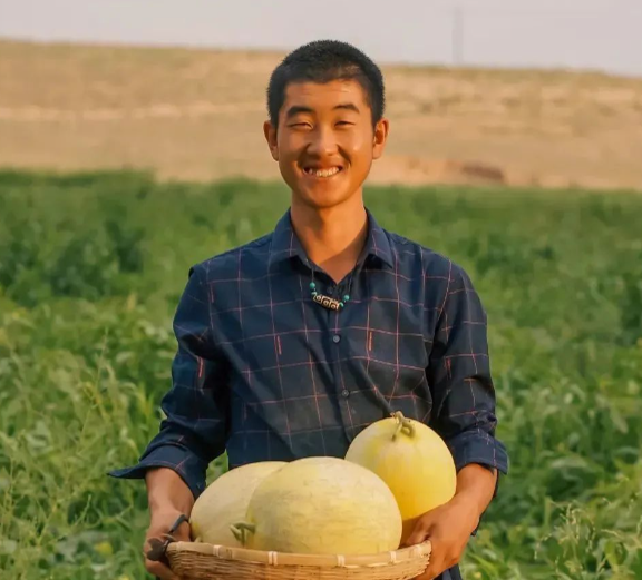 除了喜悦,我也感到骄傲。在这个极度缺水的沙漠边上,我们用羊粪和绿肥对沙土进行改良,变成肥沃的土地,又用节水滴灌种出了生态蜜瓜。它们并不是普通的瓜,而是守护沙土的卫士。