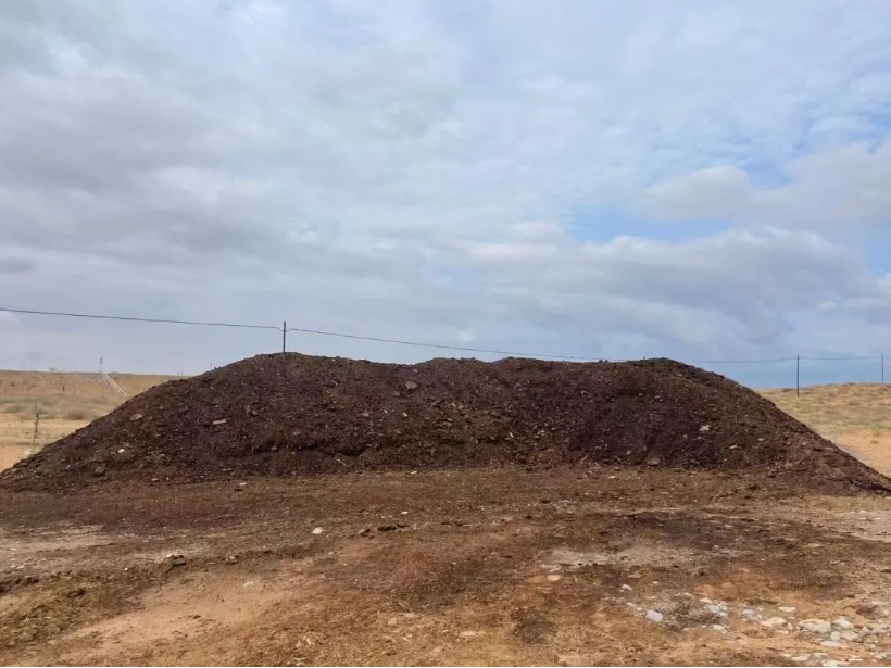 ●蜜瓜挂果期间,如果只靠土壤里的底肥,营养会跟不上。所以农场会用牧区的清洁羊粪来追肥,把腐熟好的粪肥做成沼液,再通过滴灌带输送到土壤里。