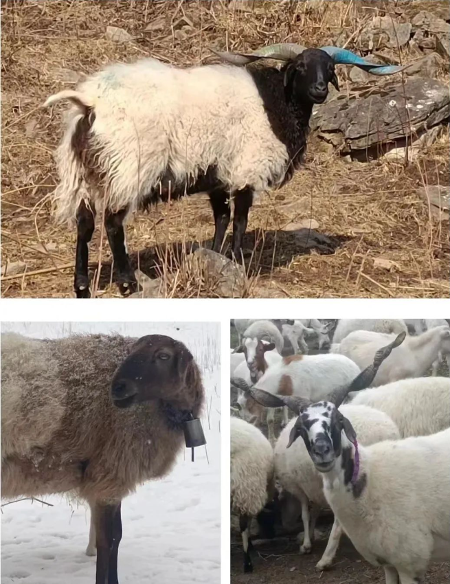 ●上图为黑头藏羊,左下和右下分别为欧拉藏羊和甘加藏羊。