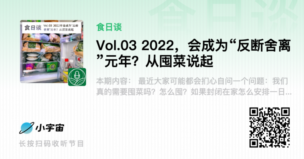 也欢迎在播客评论区,或者本文下留言,和我们分享今年在疫情阴影下的生活经历和思考。当然,我们也呼吁大家理性囤菜,避免浪费,友爱互助。