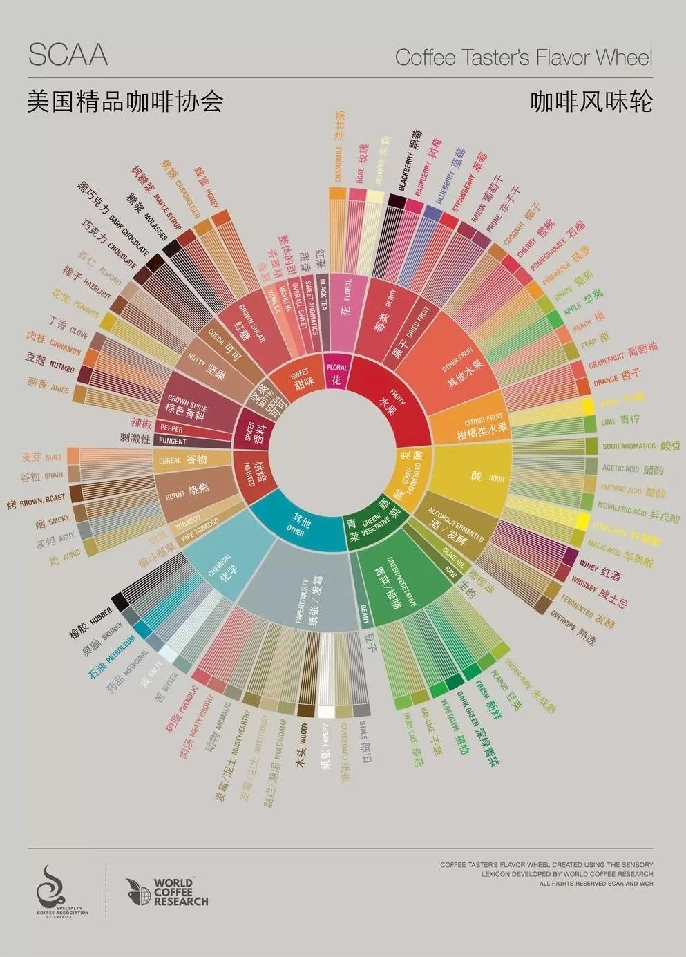我们也可以问——为什么有的香气就可以进入风味轮,而另外一些不行?为什么我们要按照风味轮的指导去品尝咖啡而不能依靠自己的直觉?如果我们真的相信产区对于咖啡风味的决定性影响,为什么是位于欧美国家的行业协会取代了产区的本地知识,主导了我们对于咖啡风味的鉴赏?